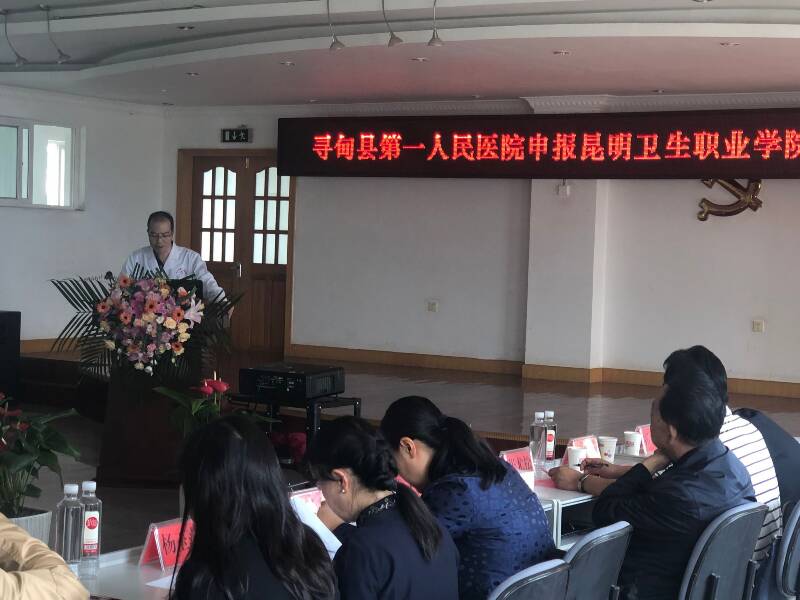 云南省教育厅职成教处副处长李永珺,职成教处浦艳吉,昆明医科大学教授杨玉萍,昆明医科大学第一附属医院教授张海蓉,昆明医科大学第三附属医院教授蒋永新,昆明医科大学第二附属医院教学管理部副主任顾亚律,昆明医科大学护理学院副教授杨芬等专家组成员对寻甸县第一人民医院进行了现场考察评审。