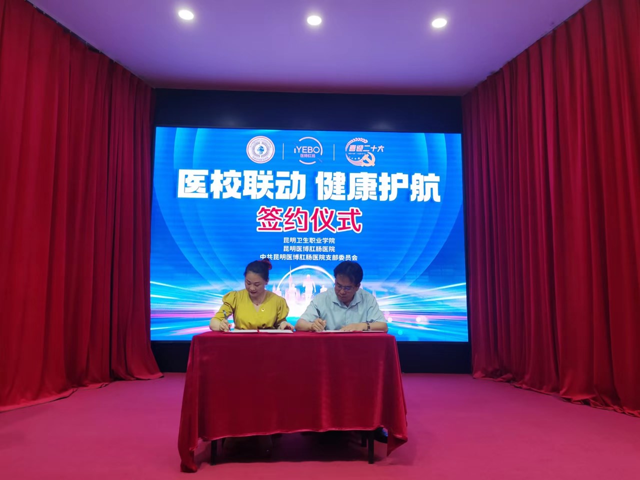 5月8日下午,“医校联动,健康护航”实习医院签约揭牌仪式在昆明医博肝肠医院活动大厅举行。昆明医博肝肠医院总经理曾雅文、副院长张小亮等领导,昆明卫生职业学院副院长张尤松,实习管理处副处长颜慧林,实习管理科科长纳适出席了仪式。