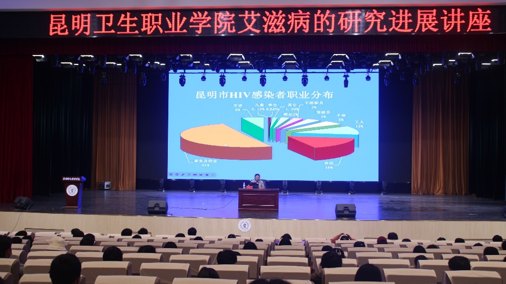 此次讲座活动面向昆明卫生职业学院的全体师生开展,王玲教授在讲座中对艾滋病的现状作了报告并向大家科普了艾滋病的相关知识,包括艾滋病的临床表现、传染源、传播途径和预防措施。