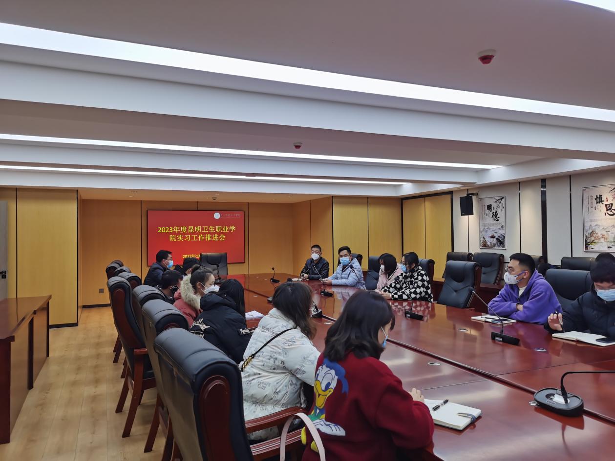 2022年12月12日,我校在明德会堂第一会议室召开了2023年度实习工作推进会。昆明卫生职业学院副院长张尤松,实习管理处副处长颜慧林以及2021级高职、2019级五年制全体辅导员参加了本次会议。会议由颜慧林副处长主持。
