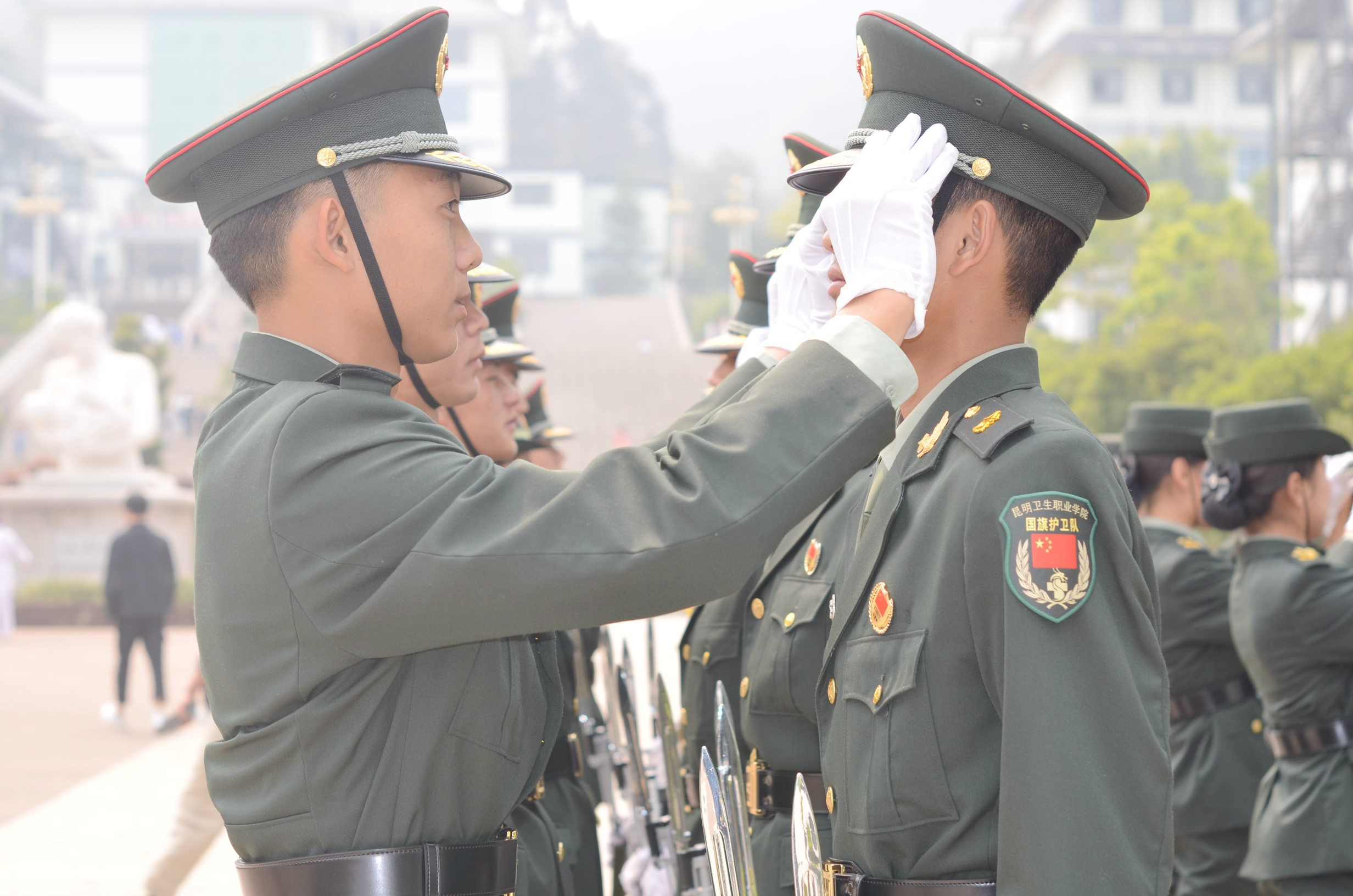 为大力培育和弘扬民族精神,规范升旗仪式,增强学生的国旗意识和爱国主义情感,201810月,昆明卫生职业学院成立了国旗护卫队。从全院学生中精选出32名思想端正的同学组成第一支国旗护卫队,由曾在部队服役的学院人民武装部三名教官进行每周10个小时的训练,训练内容囊括了队列、体能、拳术、战术、升旗规范动作、国防教育、爱国主义教育等,并于20181120日到嵩明民兵训练基地参加了为期一周的昆明警备区民兵集训。并在学院第八届冬季运会上首次亮相就得到了师生交口赞誉。如今,这支“威武之师”,已成为学院爱国主义教育的一块阵地、一本生动的德育教材。学院国旗护卫队还将进行常规的训练,将神圣、庄严的升旗仪式进行到底。