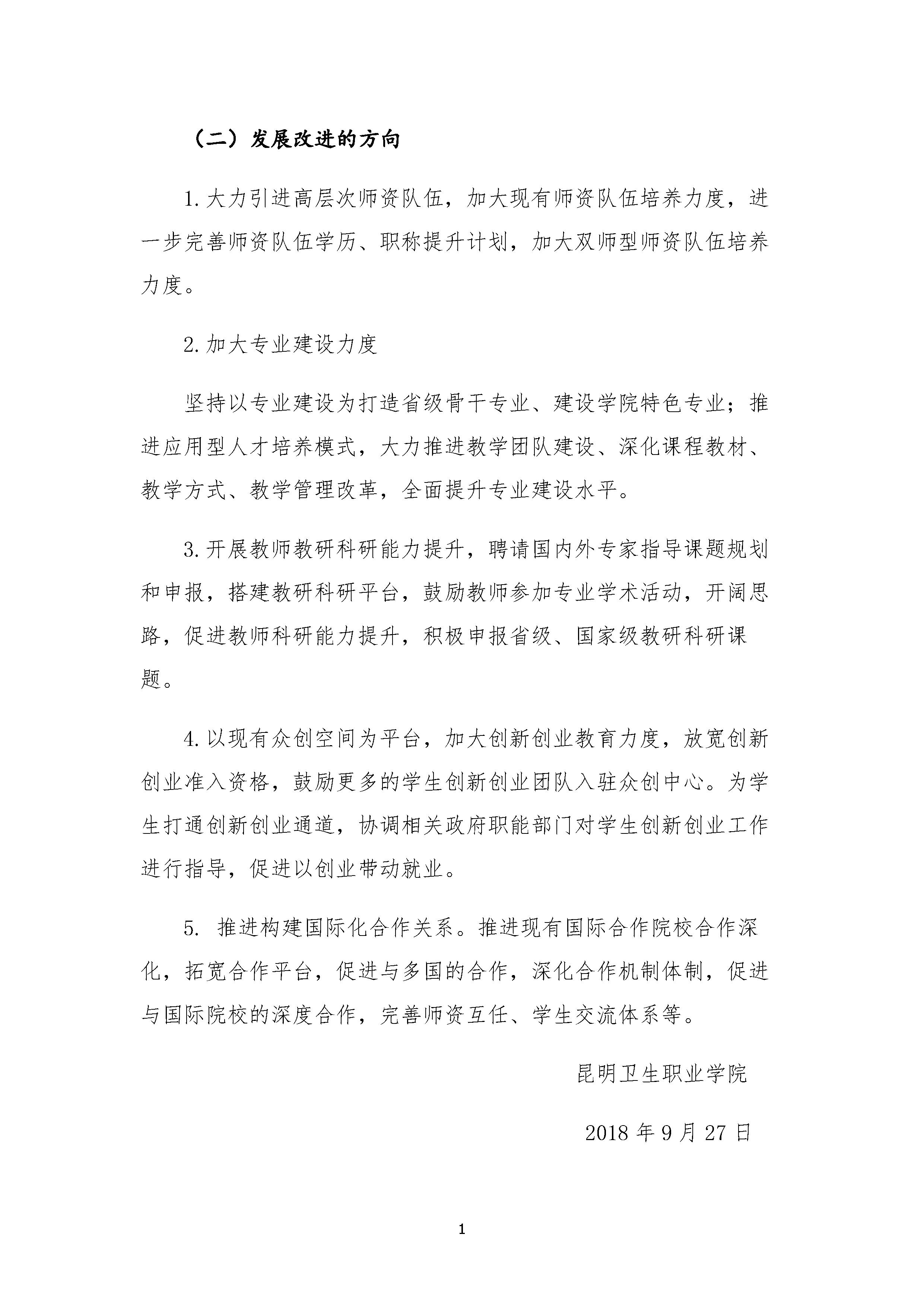 昆明卫生职业学院适应社会需求能力评估自评报告(2018年)