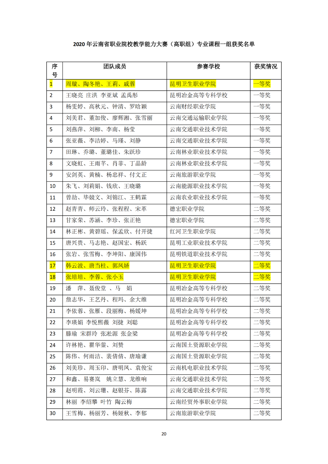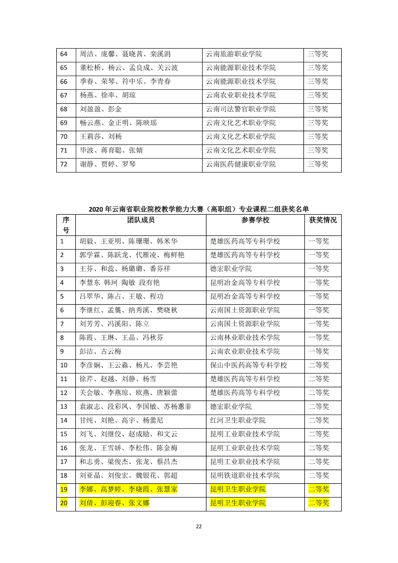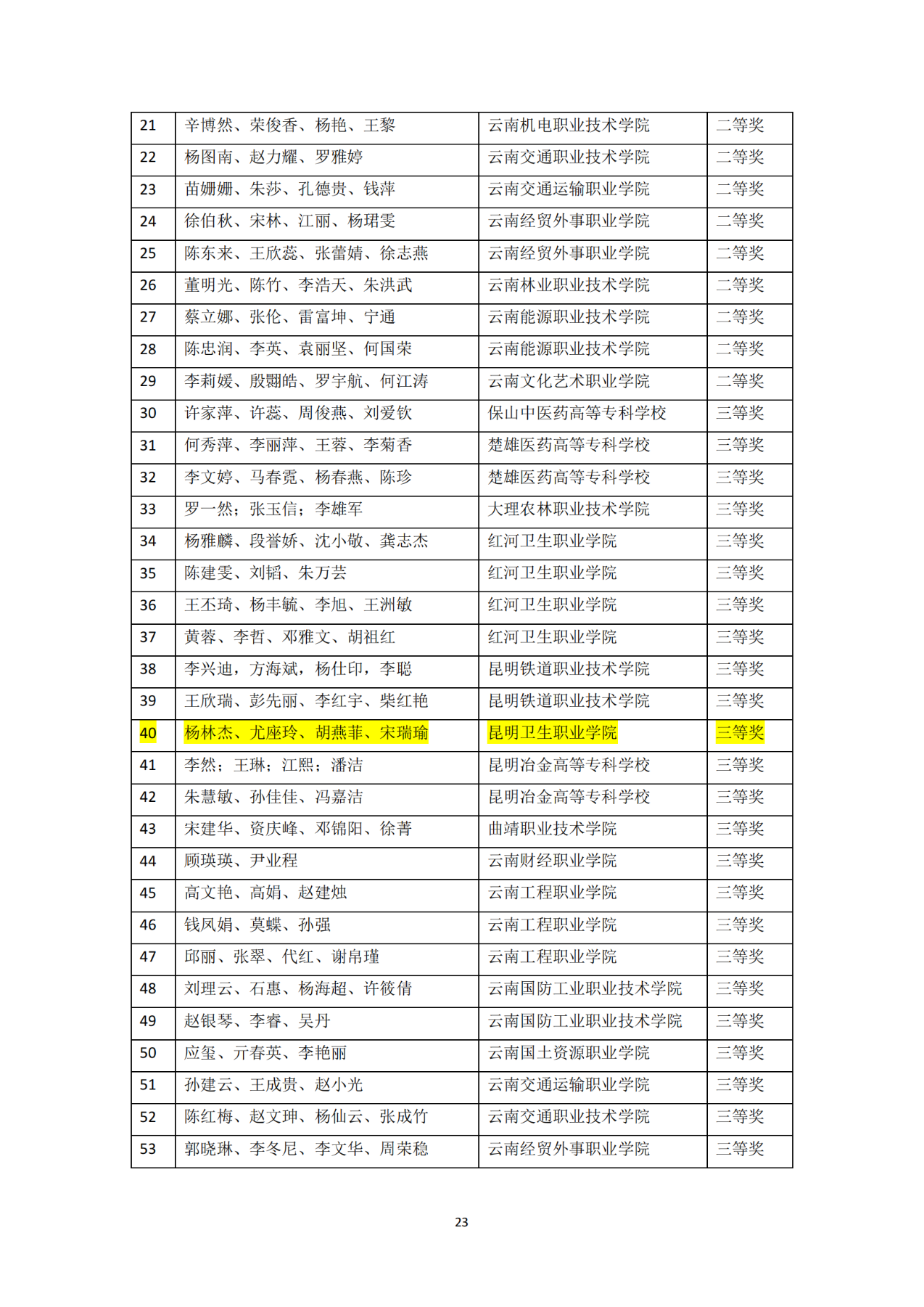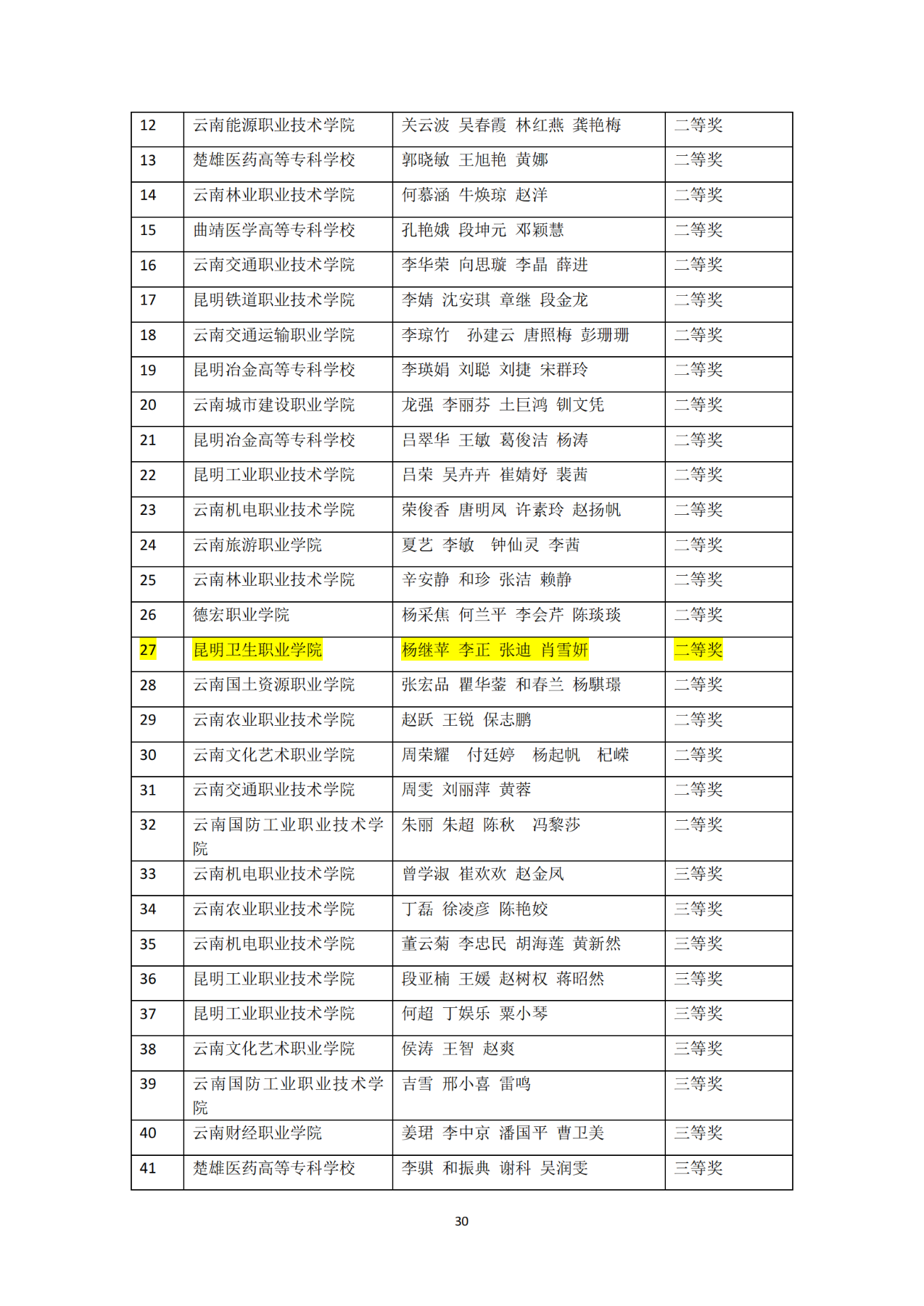 昆明卫生职业学院其他获奖情况
