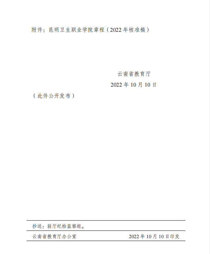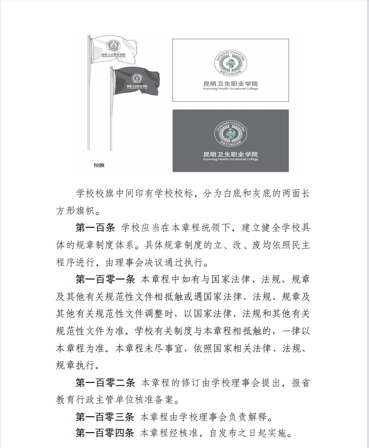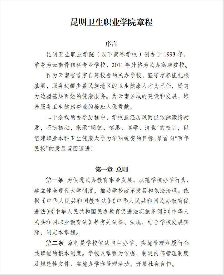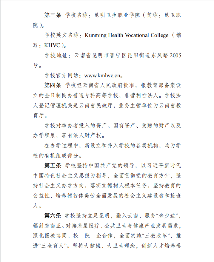 昆明卫生职业学院章程(2022年核准稿)