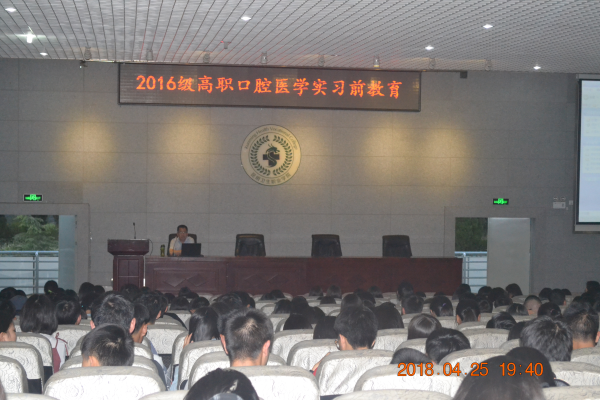 4月25日晚,2016级口腔医学专业临床实习前教育会议,在高职院学术报告厅召开。张尤松副院长,实习管理处颜慧林副处长、郭嘉华老师,出席了此次会议。为使即将步入社会、走上实习岗位的学生,能更好地了解临床实习的重要性,充分做好实习前准备,张尤松副院长针对口腔医学专业的全体学生,做了临...