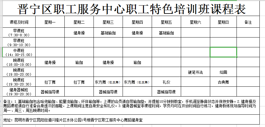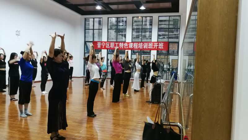 此次职工培训班开设的课程有:健身操、瑜伽、拉丁舞、东方舞(肚皮舞)、礼仪、硬笔书法、绘画、古典舞、运动器械9门特色课程,特色课程专门聘请授课老师,在大家下班后业余时间,为职工提供培训。