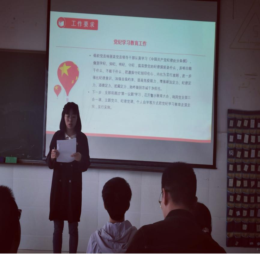 为深入学习贯彻习近平总书记关于党纪学习教育的重要讲话和重要指示精神,扎实开展党纪学习教育,教育引导支部全体党员学纪、知纪、明纪、守纪,使广大党员深入理解和把握党的纪律规定,营造风清气正的政治生态环境,进一步坚定理想信念,锤炼党性修养,践行初心使命。4月16日,公共学院直属党支部召开党纪学习教育动员部署会,会议由支部书记杨丽琴主持主讲。