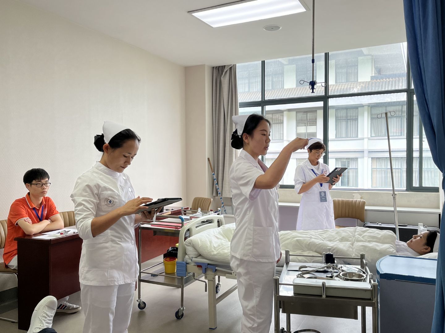 本次考试,我校在卫健委的指导下,使用了最新的全国护理实操考试系统进行评分,线上进行成绩录入,简化了线下纸质评分表评分繁杂的统分步骤,无纸化考试也减轻了环境负担,符合国家可持续发展战略。同时减少了线下成绩录入可能产生的错录,保证了考试成绩的准确性;避免了线下录入途径在成绩提交给考试中心时可能会出现的篡改成绩等现象,提高了考试的公平性和可信度。