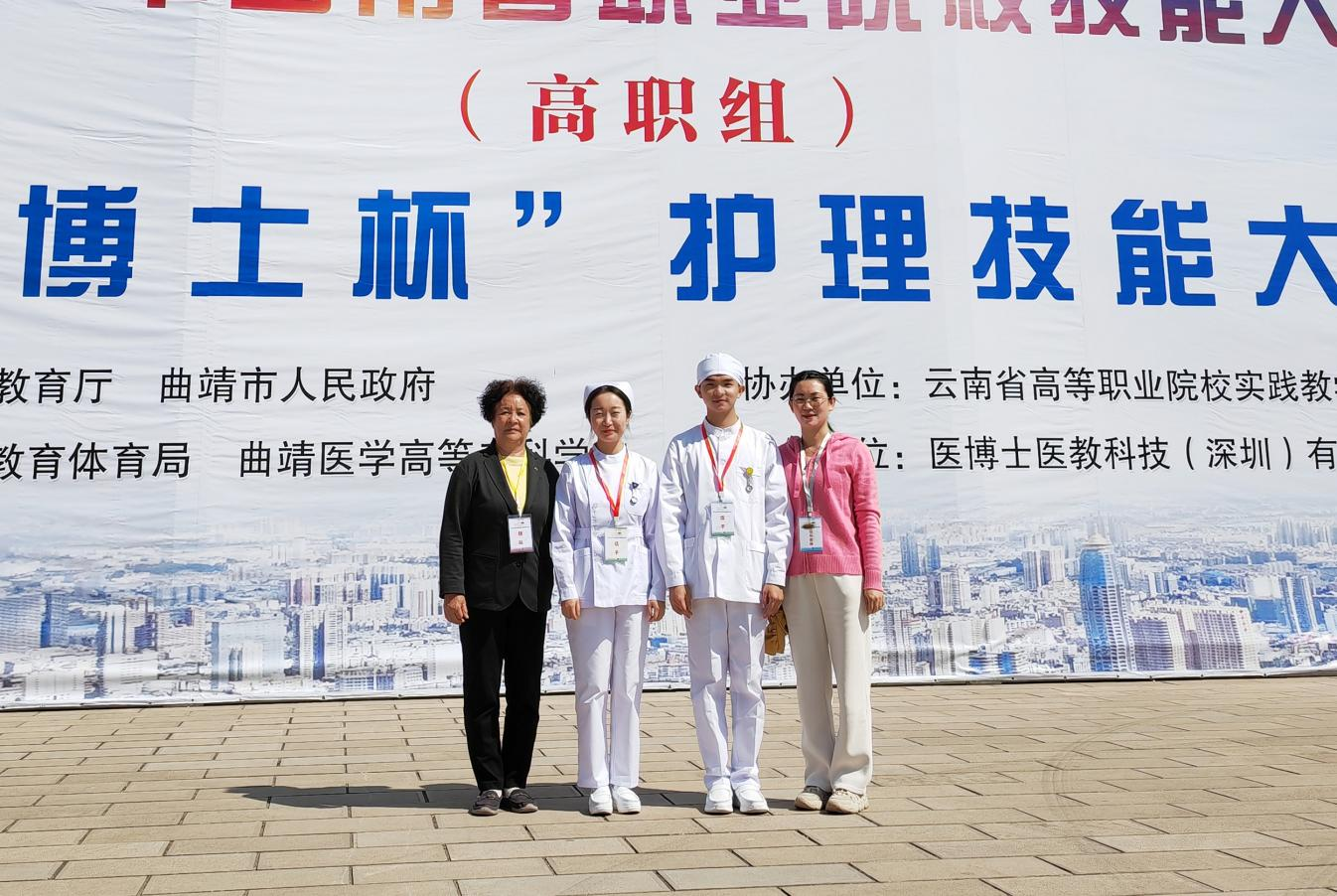 3月26日,2022年“医博士杯”云南省职业院校技能大赛高职组护理技能赛项在曲靖医学高等专科学校落下帷幕。昆明卫生职业学院选派李梦张、董廷轩两名同学,在与来自全省20家院校的36位参赛选手同场竞技过程中,沉着冷静,稳定发挥,最终双双斩获一等奖。