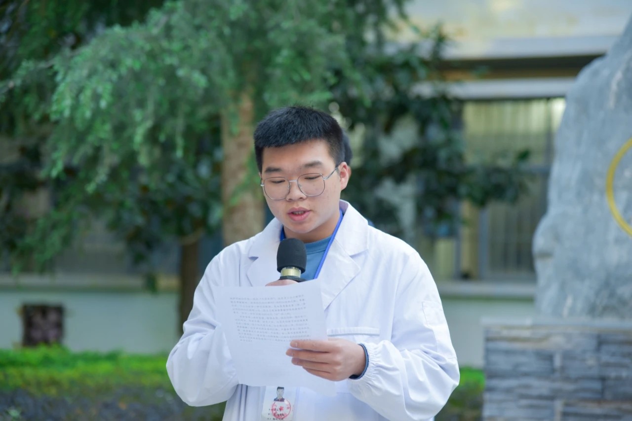学院党委书记马季昕勉励同学们要感同身受地体会大医精诚和医者仁术的深刻内涵和高尚情操,感悟医学生成长的责任和义务,将预防疾病、解除病痛和维护群众健康作为医学生的神圣职责。珍惜来之不易的学习机会,练就过硬本领,不断增强为人民健康服务的专业水平和本领。将小我融入祖国的大我、人民的大我之中,做人民健康的守护者,毕业后到人民最需要的地方去,以仁心仁术造福人民特别是基层边疆群众,努力做党和人民信赖的好医生。