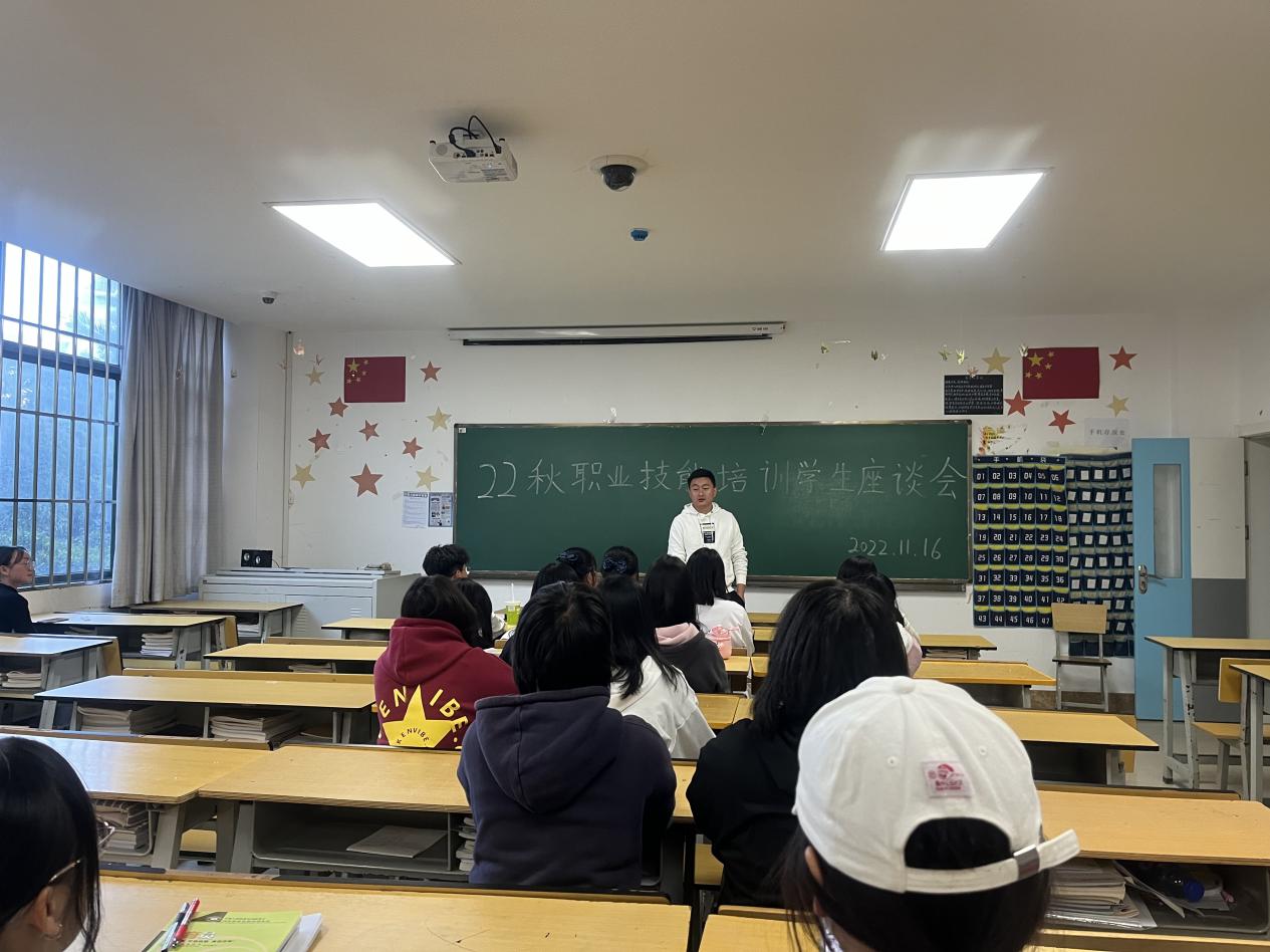 继续教育学院秉持着“全心全意为学生服务”的宗旨,为服务好学生,提升教育教学质量,狠抓落实培训教学及学生管理,及时全面的了解学生对培训课程教学、管理等方面的反馈和建议。2022年11月16日18时在继续教育学院102室召开了2022秋季学期职业技能培训班级学生座谈会。继续教育学院李丞浩老师,张媛老师、龙锦老师、覃丹老师,以及各培训班级学生代表参加了此次座谈会。会议由李丞浩老师主持。