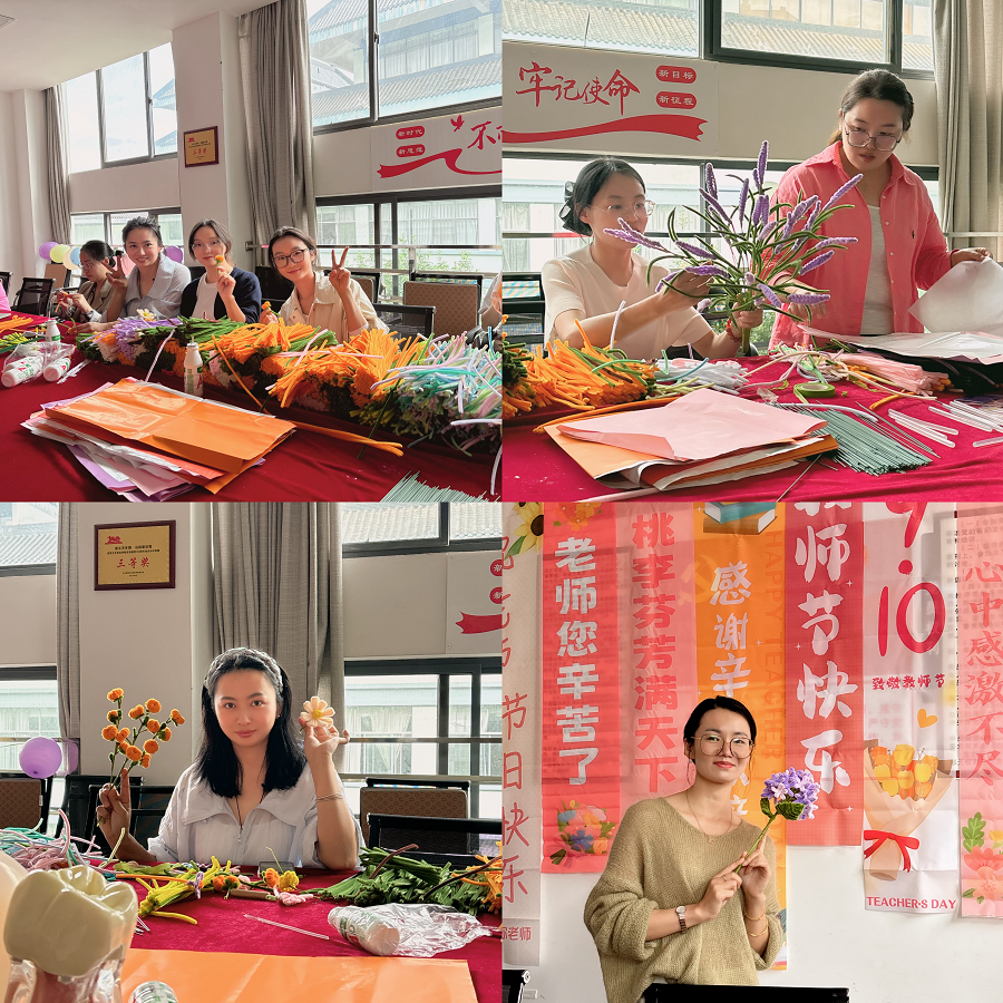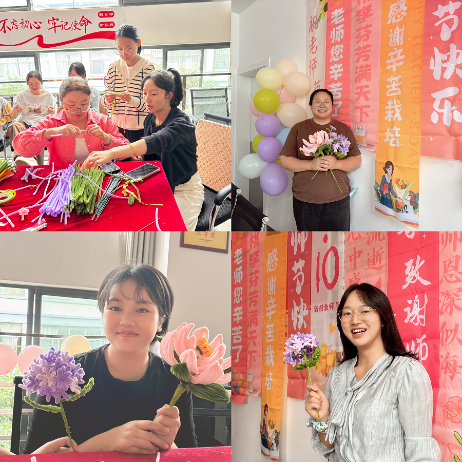 金风送爽,桃李芬芳,2025年9月10日为热烈庆祝第41个教师节,丰富教职工文化生活,9月10日11点,昆明卫生职业学院口腔学院在311会议室举办“巧手扭花颂师恩,挥毫泼墨写初心”主题活动。学院领导及教师齐聚一堂,以缤纷扭扭棒编制“微笑花束”,以遒劲笔墨书写育人初心,在花香与墨香中度过了一个温馨、专业又富有文化味的节日。