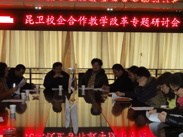 昆明卫生职业学院与昆明口腔硕博医疗知识咨询管理有限公司“口腔校企合作教学改革研讨会”于2015年1月18日上午顺利举行。昆明口腔硕博医疗知识咨询管理有限公司董事长、口腔学院名誉院长赵青率领专家团队22人参加校企合作教学改革研讨会。学院教务处陈举国处长、虎志辉副处长,口腔学院全体教师参加了此次会议。会议由口腔学院副院长张晓刚老师主持,口腔学院唐月华院长向与会代表介绍了昆明卫生职业学院基本情况和口腔学...