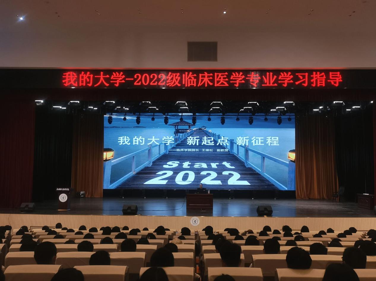 2022年9月13日,在这个充满收获、满载希冀的季节里!临床学院在明德会堂举办了2022级临床医学专业新生入学教育大会,大会由临床学院院长王建松副教授主讲,临床学院党支部书记赵祥迪同志、2022级临床医学专业全体新生和辅导员参加会议。