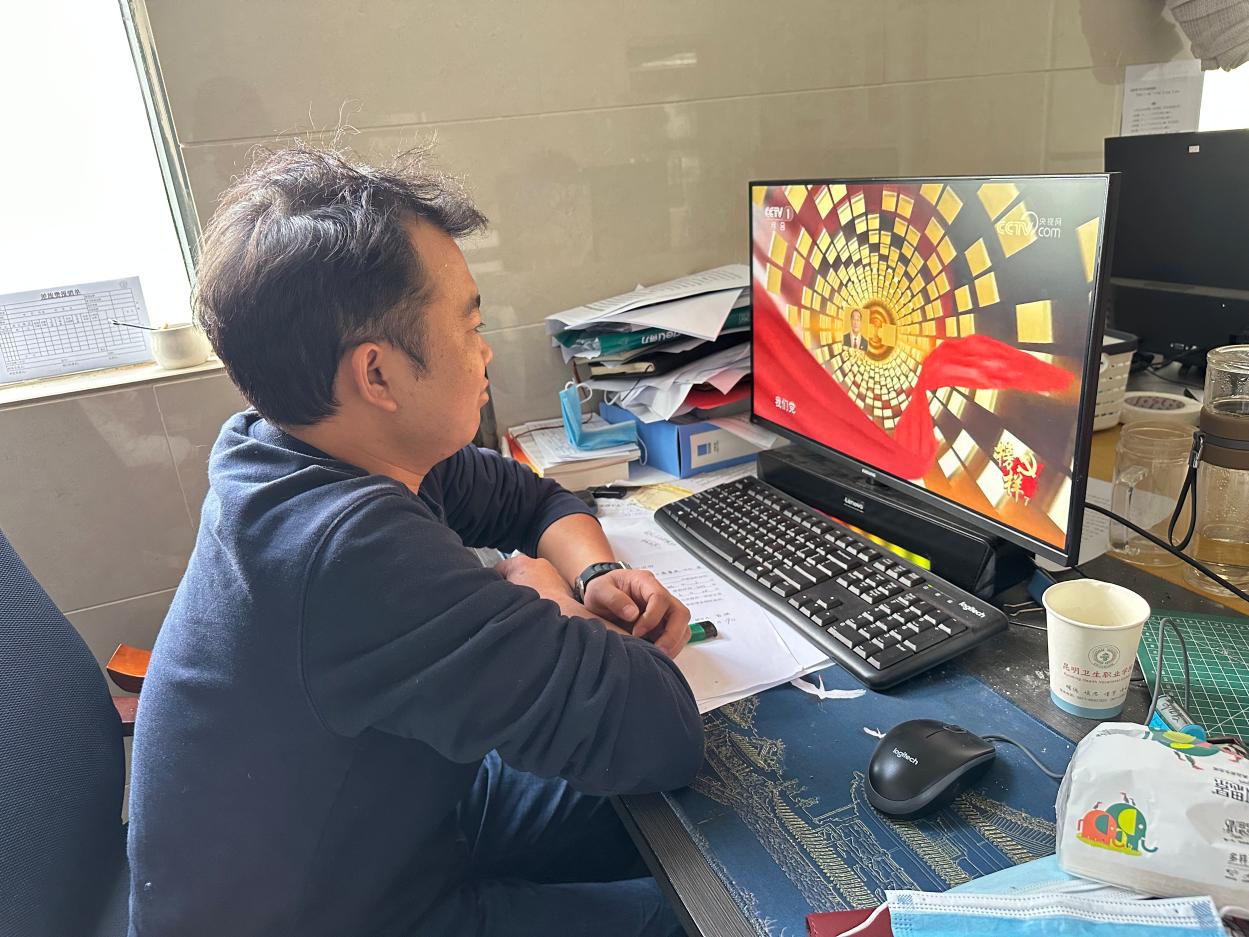 图1:临床党支部书记王德昌同志正在学习观看《榜样7》专题节目