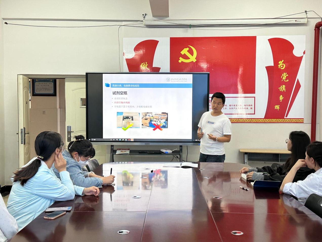 为了进一步加强和规范实验室安全工作,有效防范和消除安全隐患,最大限度减少实验室安全事故,保障校园安全、师生生命安全和学院财产安全, 2023年6月9日由临床学院组织开展“临床学院实验室安全检查与整改工作”,通过实地查看,现场分析后,2023年6月13日针对安全责任体系、管理制度、教育培训、安全准入、条件保障,以及危险化学品等危险源的安全管理的内容进行培训。