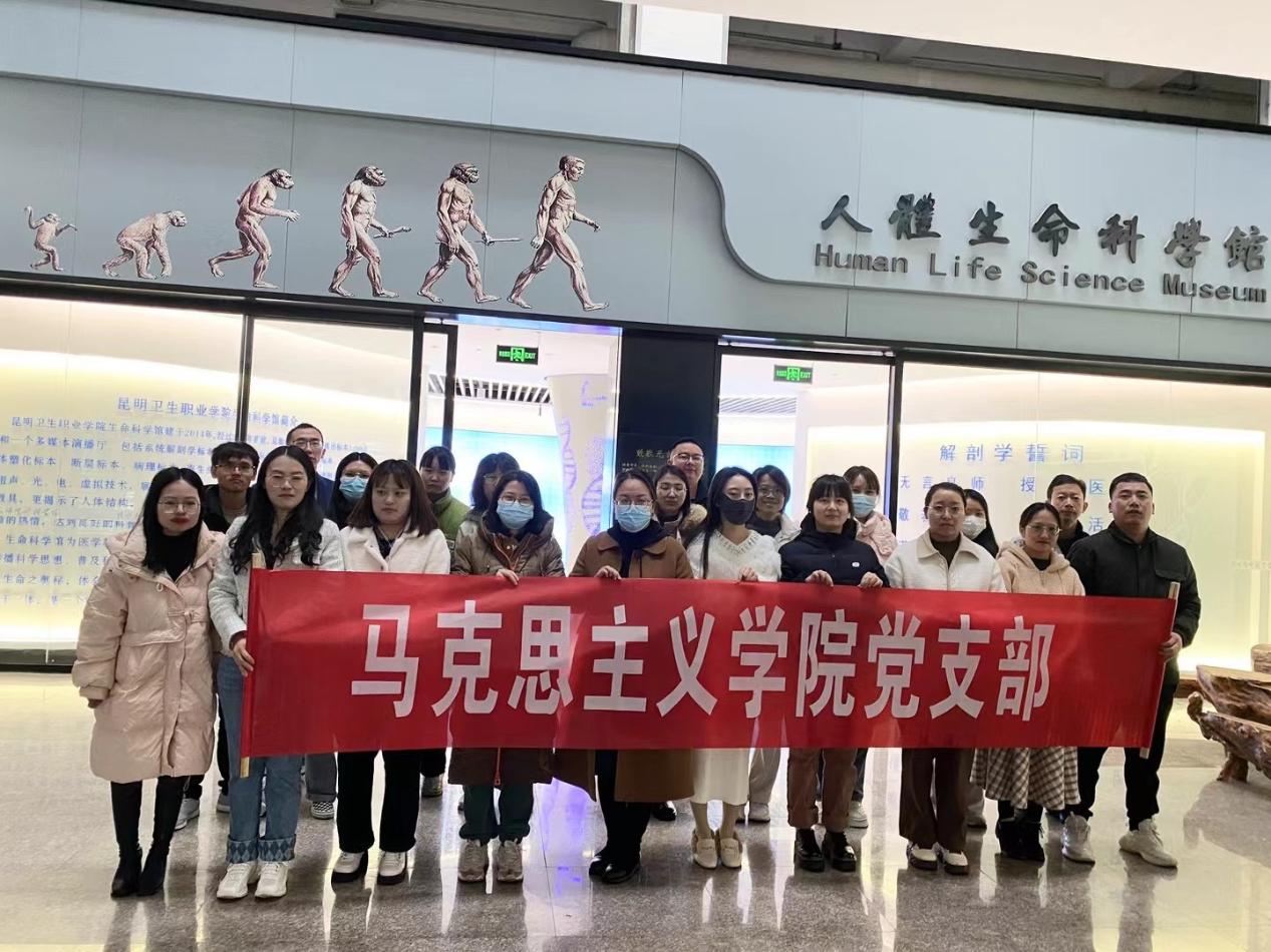 马克思主义学院直属党支部于2024年1月17日下午14:00——15:30组织马院全体教职工前往昆明卫生职业学院基础医学院的人体生命科学馆参观学习,这次活动为教职工们提供了一个思政课与其他课程融合的机会,让他们更深入地了解人体生命科学知识,增强自身的科学素养。