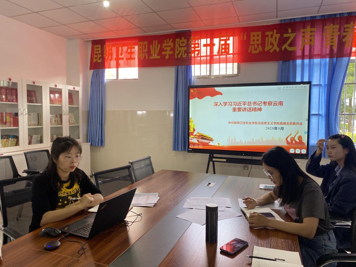 2025年5月25日,马克思主义学院直属党支部召开专题学习会议,深入学习习近平总书记考察云南重要讲话精神,马克思主义学院全体教师参会。