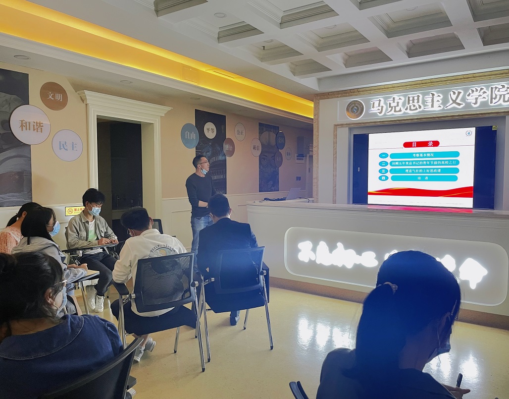 习近平总书记到中国人民大学考察、调研思政课改革创新进展并发表重要讲话,表明了党和国家对于青年培养和作为立德树人关键课程的思政课的重视。最后,苏老师对本次主题学习作总结发言,他指出,全体思政课教师要牢记习近平总书记的教导和嘱托,把讲话精神落实到日常工作中,坚守立德树人根本任务,牢记“为党育人、为国育才”的使命,教育引导青年学生奋发有为,成为复兴栋梁、强国先锋。