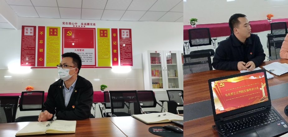 其次,支部书记杨登光同志介绍了支部相关情况和支部纪律要求。马克思主义学院党员苏敏同志在会议上提出将易班平台融入到马院党支部的建设和发展中来,让每位党员同志认识好、运用好易班平台,发挥党员先锋模范作用,争做学生思想引领者。
