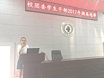 2017年6月14日下午六点三十分,校团委2017年学生干部换届竞选大会在我院学术报告厅举行。本次到场的嘉宾有校团委老师和各个参选者班主任老师,教师代表,以及学院各部门学生干部以及班级团员代表。
