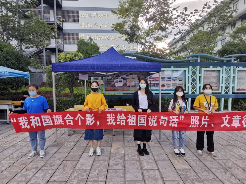 “我和国旗合个影,我给祖国说句话”照片、书法展活动圆满结束。活动中同学们积极参与,同时也流露出了对祖国的热爱,增强学生爱国意识。活动不仅加强校园文化建设,同时也激励和引领青年大学生的爱国主义情怀,坚定了理想信念,增强责任感和使命感。