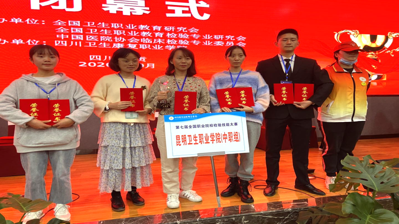近年来昆明卫生职业学院昆明校区不断加强内涵建设,确保人才培养质量,在质量工程建设方面取得了丰硕的成果。在为期三天的激烈角逐中,我院昆明校区三名参赛选手面对强劲的竞争对手,沉着应对,冷静对待竞赛中出现的突发状况,充分展现了昆明卫生职业学院昆明校区检验学子良好的职业素养和职业技能,最终在本届大赛中取得可喜成绩。