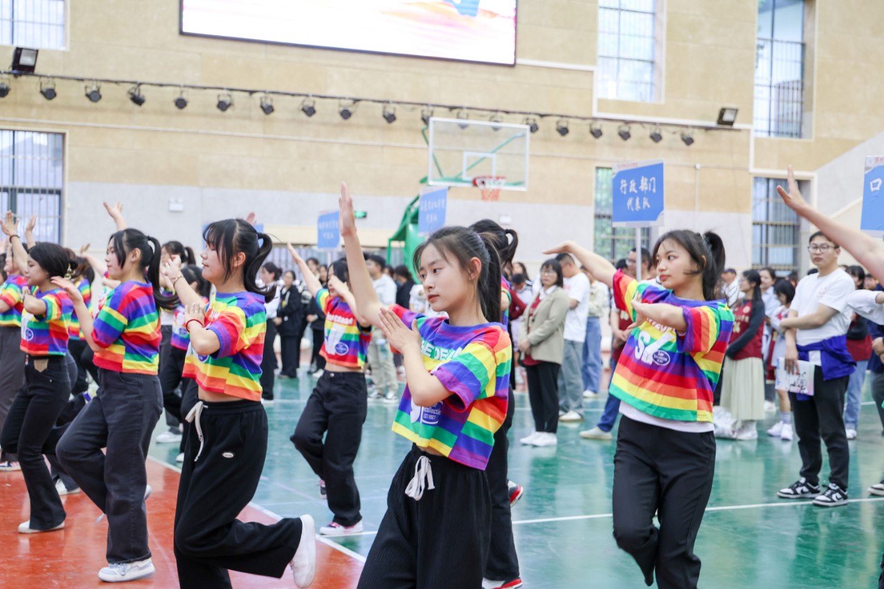 在文艺表演环节,啦啦操队伍也在欢快的音乐中现身,给现场观众带来了一场激情活力的表演,赢得了阵阵掌声和欢呼声。
