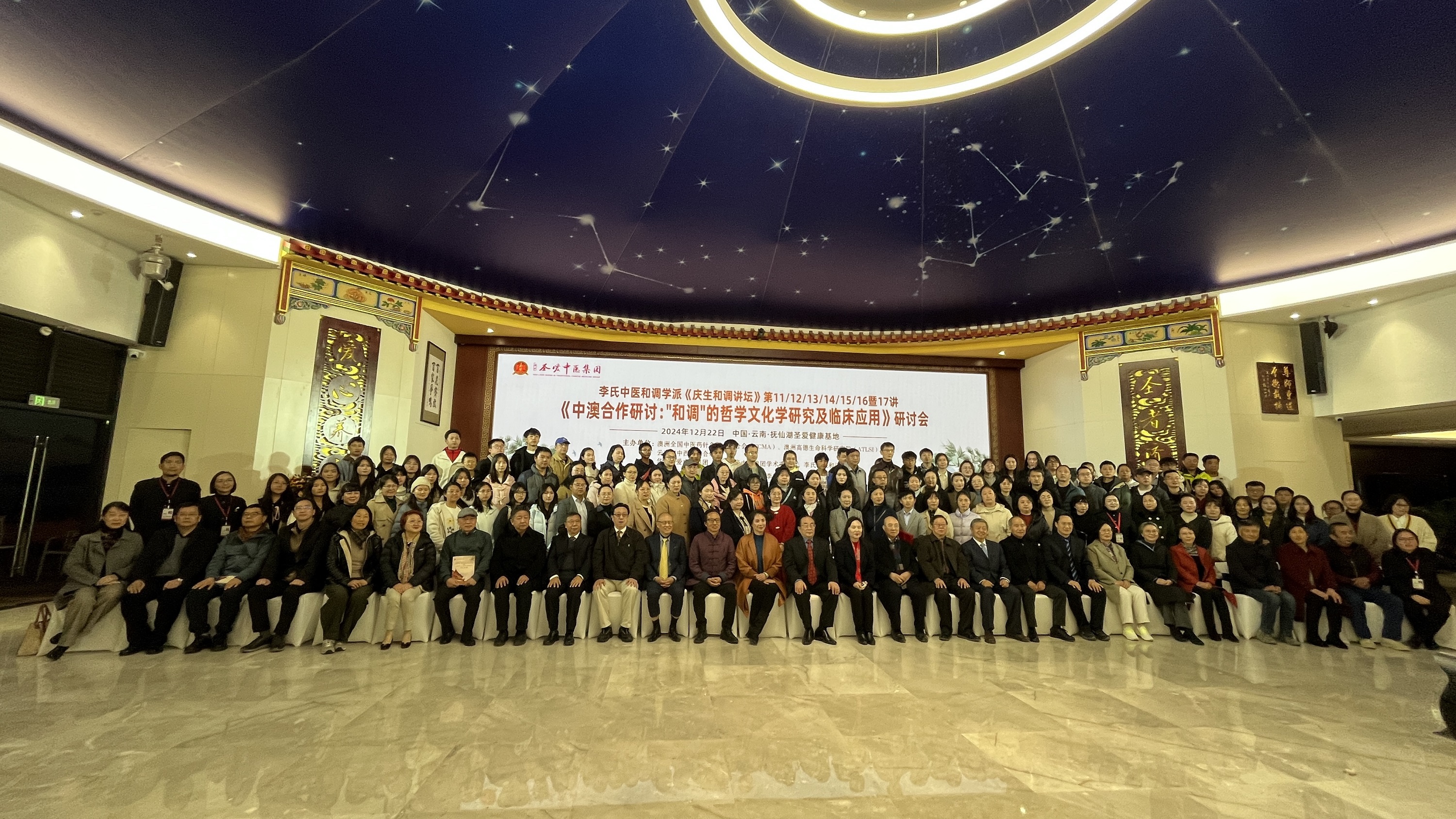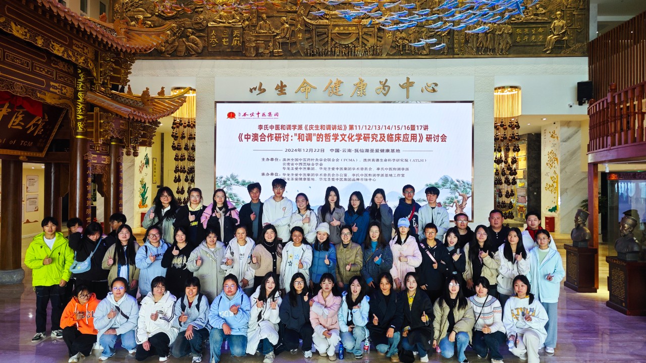 2024年12月22日,中澳合作的《“和调”的哲学文化学研究与临床应用研讨会》在云南澄江抚仙湖圣爱健康基地国际会议中心举行。来自澳大利亚及国内的七位学者分别作主题报告。在圣爱中医馆的盛情邀请下,中医学院7名教师和40位学生代表参加此次研讨会,开启了一场盛大的学术之旅。