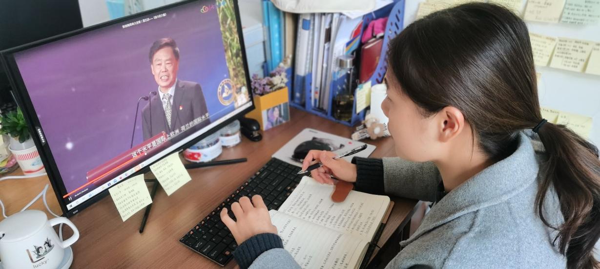 思政大讲堂观看过程中,各位观看者态度认真严肃,虚心学习节目中的优秀共产党员的高尚品德精神与思想。认真做好笔记记录,积累方法经验,积极汲取其中的实践经验并结合自身情况得出新的结论。