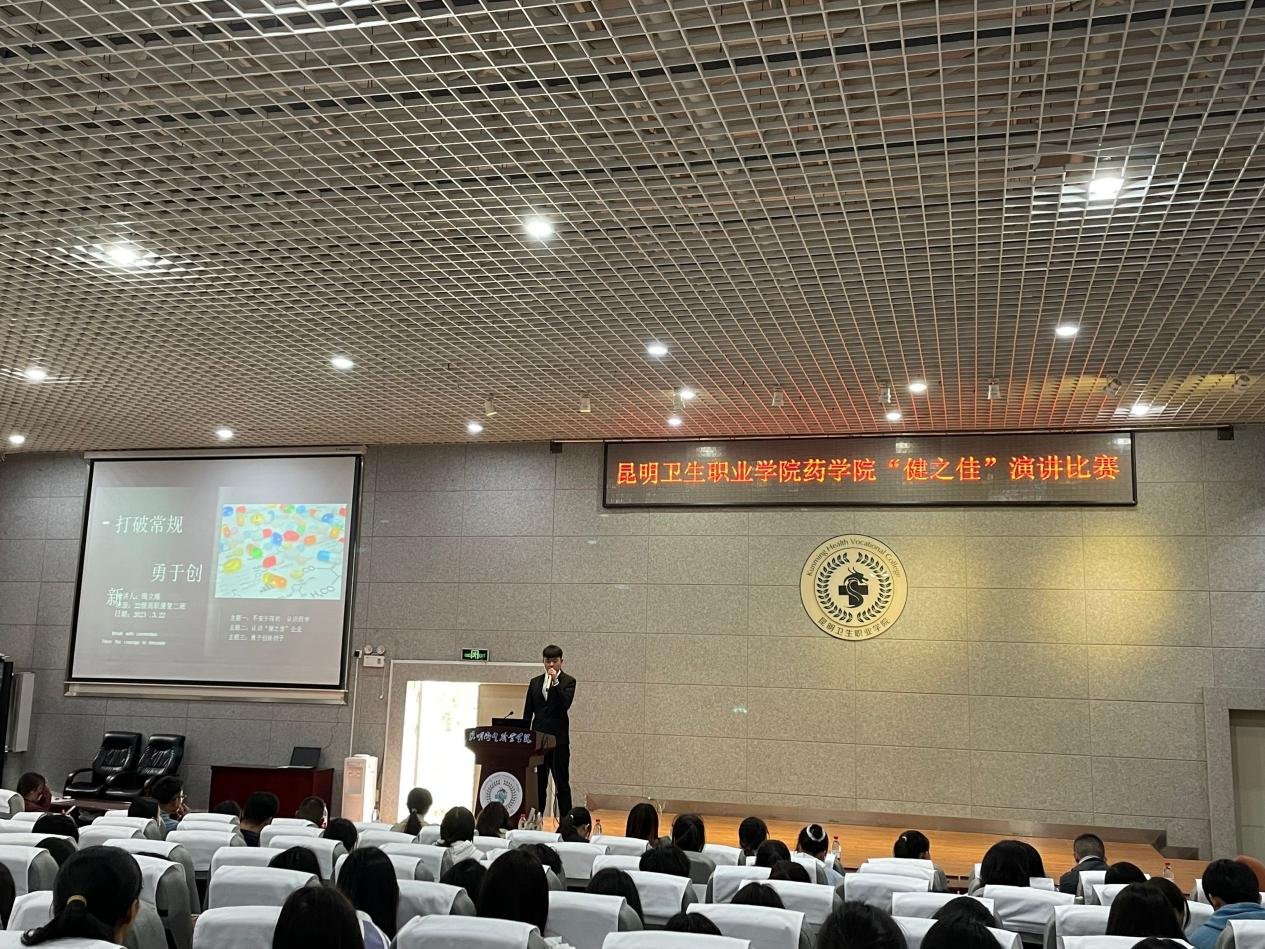 2023年3月29日14:00,药学院在学术报告厅举办“健之佳未来之星”校企合作演讲比赛校赛。云南健之佳健康连锁店昆明分部人事部经理宋菲老师,人事主管邱婷老师,方宇老师,董钟蕙老师,药学院副院长唐当柱老师,综合办主任李春逵老师,药事管理教研室李顺兰老师,药物化学教研室施国军老师,辅导员张秋会老师、陈达老师、吴自芬老师出席本次比赛并担任评委,药学院各班学生代表观看了比赛。药学院副院长在赛前做了致辞讲话,希望同学们赛出风格,赛出水平,演讲比赛在主持人比赛规则及评分标准后展开。
